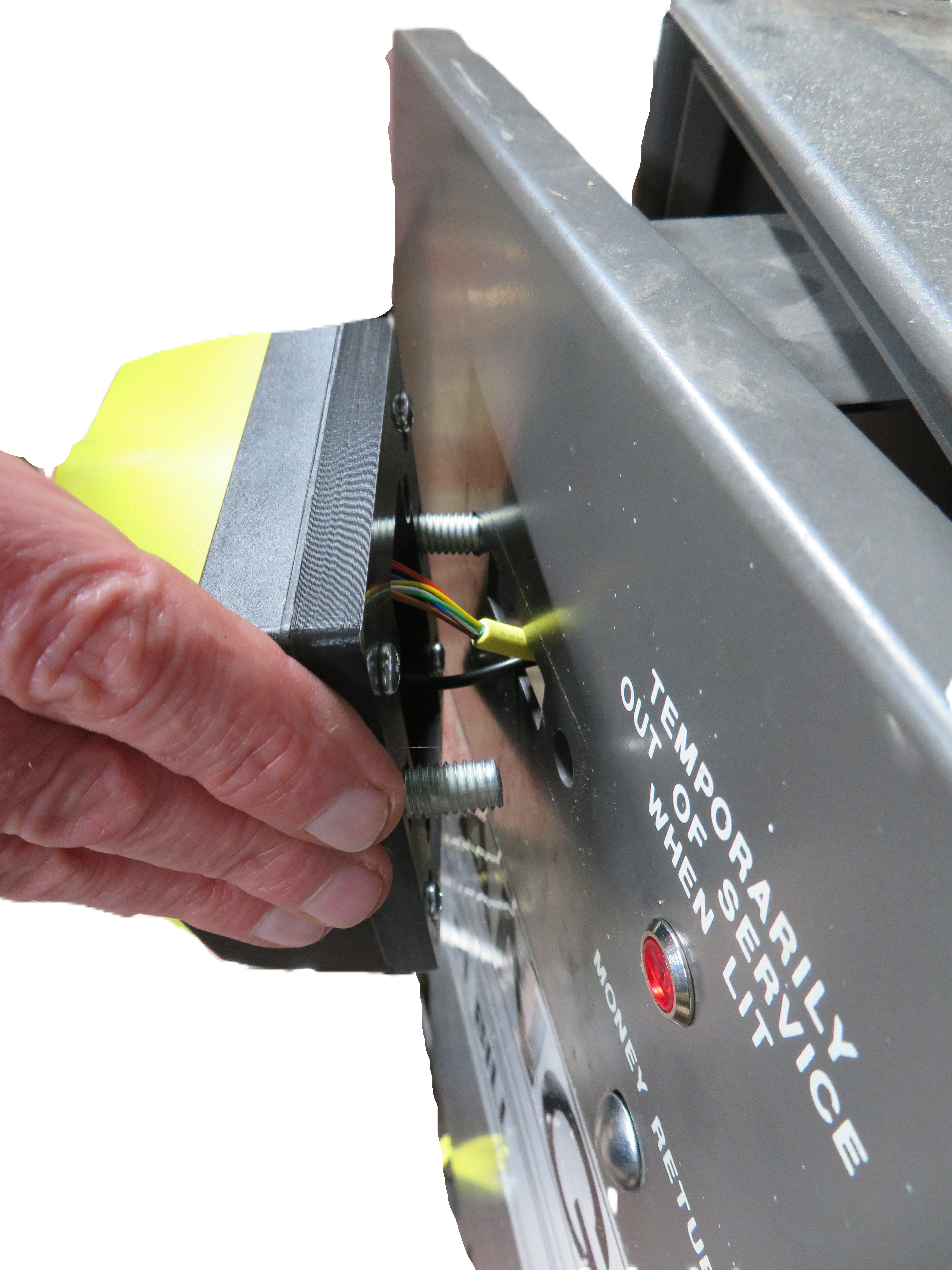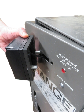 The Rowe BC11, BC12, and BC1200 mounting kit allows a stand-alone card reader mask to me mounted in the area originally occupied by the coin entry plate. The mounting kit eliminates the need for drilling.